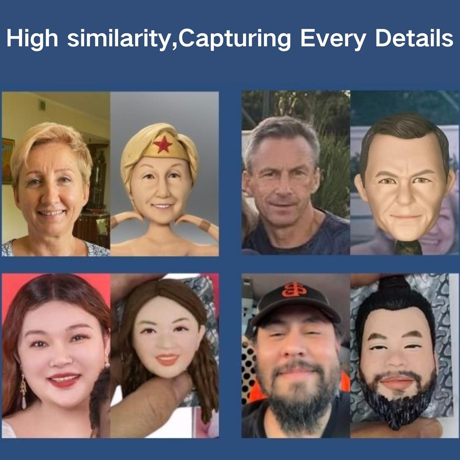- 【High Similarity】: Every artist on our team has over 10 years of experience. ensuring a high level of likeness to your face. Our artists meticulously sculpt each detail to capture your unique features.